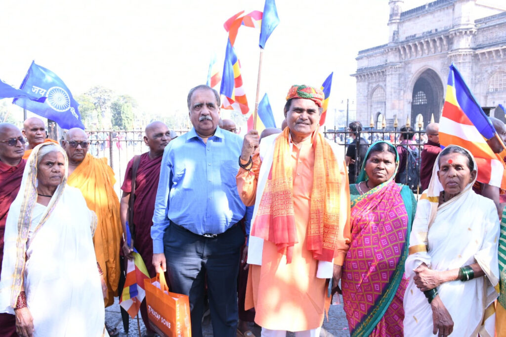 मुंबई: बांग्लादेश में गैर मुस्लिमों पर हो रहे अत्याचार के विरोध मे बौद्ध भिक्षुक संघ मुंबई द्वारा 10 दिसंबर को गेटवे ऑफ इंडिया पर प्रदर्शन किया गया,इस आंदोलन में मुंबई के पूर्व उपमहापौर और जैन समाज के नेता बाबुभाई भवानजी भी मौजूद थे ।