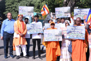 बांग्लादेश में गैरमुस्लिमों पर हो रहे अत्याचार के विरोध में बौद्ध भिक्षुक संघ, का प्रदर्शन