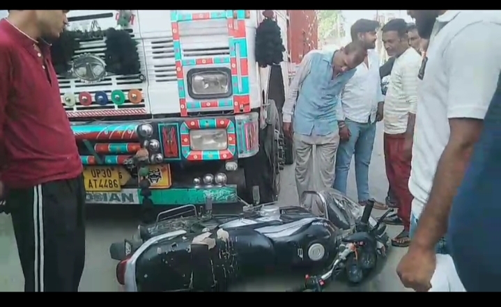 *ट्रक ने बाइक सवार को मारी जोरदार टक्कर बाइक सवार को आई गंभीर चोटें*